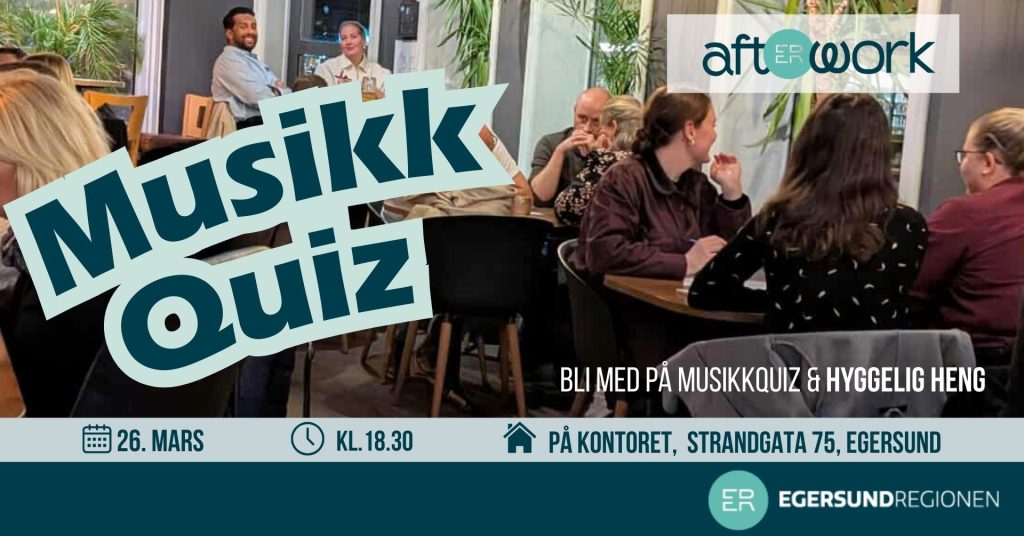 aftERwork: Quiz med Egersundregionen 26. mars på Kontoret
