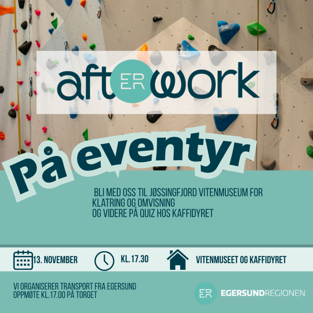 Bli med på afterwork i Egersundregionen hver måned. Treff nye mennesker, kjente og ukjente kollegaer. Finn ut hva som rører seg i regionen. AftERwork er både gratis og gøy!